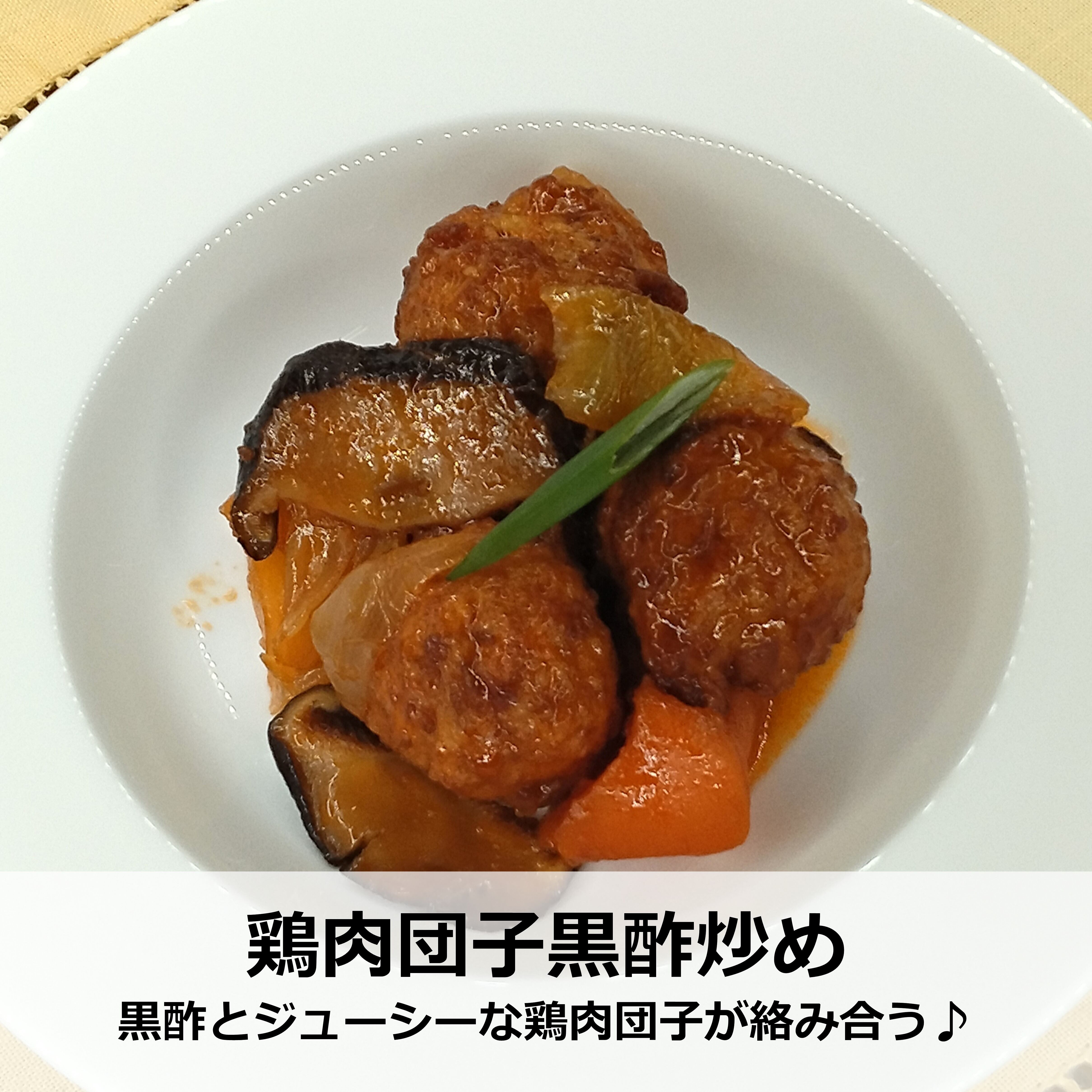 鶏肉団子黒酢炒め(鶏肉・玉ねぎ・生姜・卵・片栗粉・人参・干椎茸・ケチャップ・醤油・黒酢・ごま油・にんにく)/アルコール